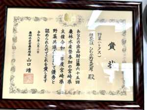 宮崎県農産園芸特産物総合表彰式にて受賞